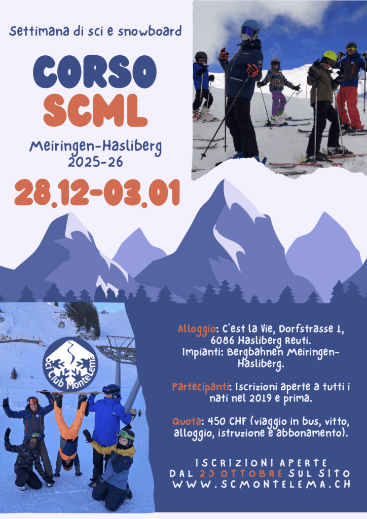 Per poter partecipare al corso, ogni partecipante deve essere socio dello Sci Club Monte Lema o fare parte del Gruppo Competizione Tamaro Team. Nel caso non lo sia, verrà aggiunta una sovrattassa di 30 CHF al costo totale del corso, per diventare socio dello SCML per la stagione 25-26.